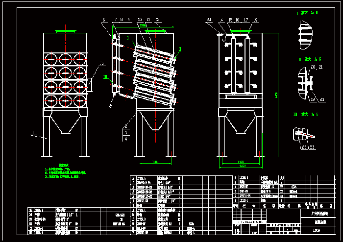 濾筒除塵器的氣流分布很重要,考慮如何避免設(shè)備進(jìn)口處由于風(fēng)速較高造成對濾料的高磨損區(qū)域。氣流分布板用于濾筒式除塵器有要求,氣流分布穩(wěn)定和均勻。才有利于氣流的上升和粉塵的下降,氣流分布板開孔率35%。根據(jù)計(jì)算,阻力系數(shù)<2,由此可見在氣流速度<0.8m/s的情況下,多孔氣流分布板可以滿足濾筒式除塵器的要求。